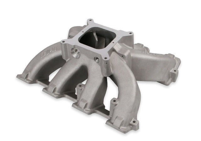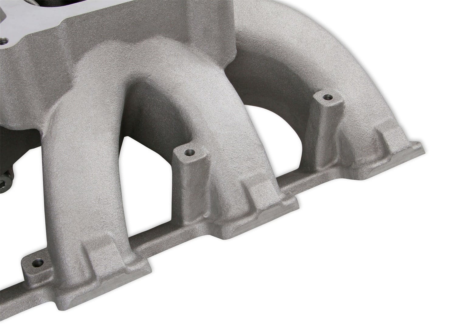 The new Holley Single-Plane Race intake manifold were designed with performance in mind. They feature a race bred, two piece split feature that was previously only found on the most expensive race intakes. The manifold will fit GM LS Gen III engines with LS3/L92 heads and are intended for 4150 style square bore flanged carburetors or throttle body EFI. The LS Race single-plane intake manifold was designed for hi-performance/racing engine applications, 5.3 to 6.2+ liter displacement, and maximum engine speeds of 6000-7000 rpm, depending on the engine combination. This single-plane design provides optimal performance across the RPM spectrum while providing maximum performance up to 7000 rpm. The Holley LS Race manifold incorporates a split feature, which allows disassembly of the intake for direct access to internal plenum and port surfaces, making custom porting and matching a snap. With shoulder bolt locators and O-ring seal, reassembly is simple and precise.