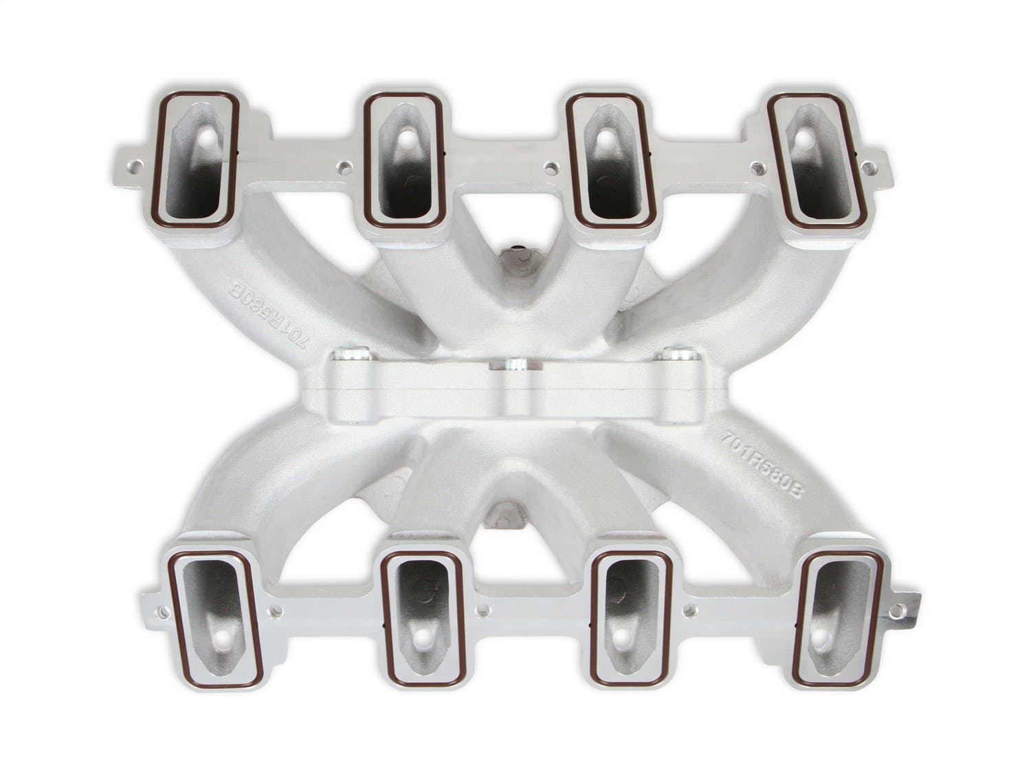 Race Intake Manifold; EFI; Fits w/GM LS1/LS2/LS6 Engines; 4500 Dominator Flange; 7.320 in. Front H.; Split Single Plane; Satin Finish; Silver; w/Fuel Rails;