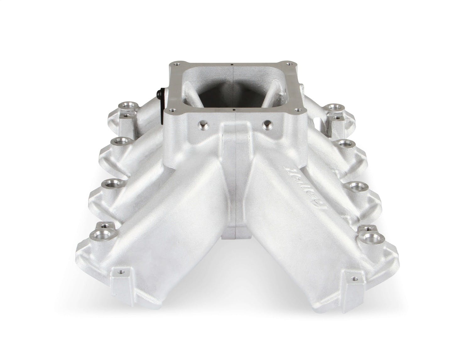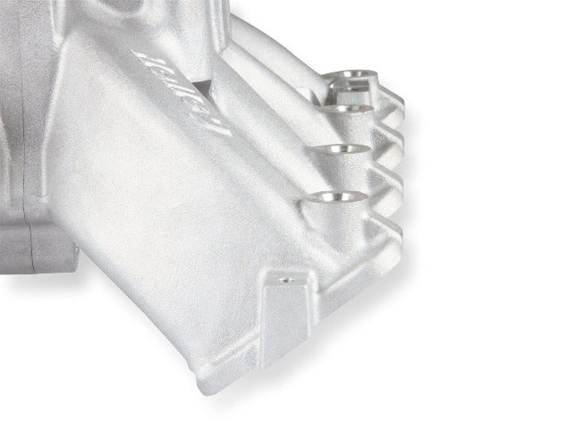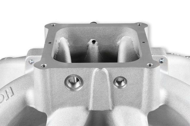 The new Holley Single-Plane Race intake manifold is designed with maximum performance in mind. Featured is a two-piece split design that provides access for all levels of porting and modification. With shoulder bolt locators and O-ring seal, disassembly & reassembly is simple and precise. The manifold with AN-8 fuel rails fits GM LS Gen III engines with cathedral port heads and has a 4500 Dominator style carb flange for carburetors, EFI throttle bodies, or EFI throttle body elbows, and is configured with a LS MAP sensor port along with other NPT plenum vacuum or air-temp sensor ports. The LS Race single-plane intake manifold is designed for hi-performance/racing engine applications, 5.3 to 6.2+ liter displacements, N/A or with power adders. The large volume 4500 plenum and optimized runners provide airflow potential for Hi-RPM engines with max power at 7500-8000+ RPM.