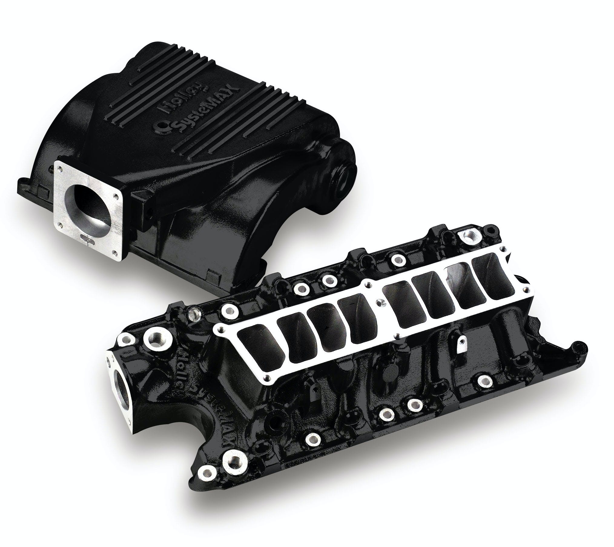 SysteMAX Intake Manifold; EFI; Hi-Rise; Front/Rear Height 10.625 in.; RPM Power Band 2000-6500; Street/Strip Use Only; Black Ceramic Coated Finish;