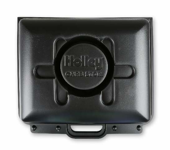 CARBURETOR CASE;Carburetor Carrying Case;Treat your carburetor to some TLC with this handy, yet practical carburetor carrying case. Made of durable plastic, it is designed to securely hold and protect your carburetor during storage or transportation. There's even room enough to accomodate a dual feed fuel line, so it need not be disconnected from the carburetor. A neat carrying handle rounds out the package and adds convenience. Locking tabs promote security. This case can hold a Holley model 2300 carburetor or any of the square flange four barrels.;Holley Carb Storage;Handy;Practical;Durable;Secures & Protects;Room For Dual Feed Fuel Line;Convenient Carrying Handle;Locking Tabs