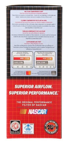 K&N washable, reusable High-Flow Air Filters feature a state-of-the-art design of layered, oiled cotton media engineered to improve airflow and capture contaminants, and are designed to provide an increase in horsepower. Each performance air filter is reusable, engineered to last for the entire lifespan of your vehicle, and backed by K&N's 10-Year/Million Mile Limited Warranty. K&N drop-in replacement filters are designed to install easily into your factory air box. Upgrade today and start enjoying superior airflow and superior performance from K&N's most popular product!