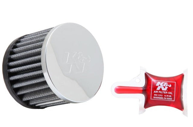 K&N crankcase vent filters are perfect for racing applications, vintage cars or individuals who want to add some aesthetics to their classic carbureted engine. The 62-1460 crankcase vent filter has a K&N embossed chrome top with a rubber base. The 1-1/2 inch diameter rubber flange is designed to push on and clamp directly on to metal or plastic tubing where venting is needed. Constructed with a synthetic filter media it can be cleaned and reused repeatedly. Note: Legal in California only for racing vehicles which may never be used, registered, or licensed for use upon a highway. See knfilters.com for CARB status on each part for a specific vehicle.