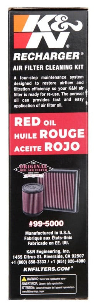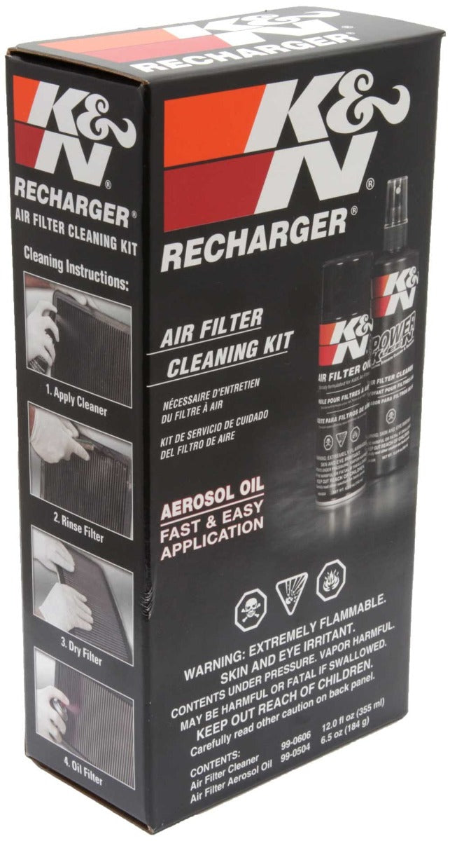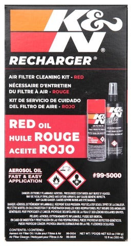 K&N Recharger Kit 99-5000 is designed to service your K&N oiled cotton air filter when it gets dirty. The kit comes with K&N Power Kleen air filter cleaner and K&N air filter oil. The 99-5000 Recharger Kit will restore air flow efficiency and will bring your air filter to like new condition. K&N Power Kleen works to dissolve the dirt build up and old filter oil, then it can be washed away with water. K&N air filter oil is included so that you can re-oil your air filter after cleaning. This Recharger Kit comes with a 6.5 ounce aerosol can of oil and a 12 ounce bottle of K&N Power Kleen air filter cleaner.