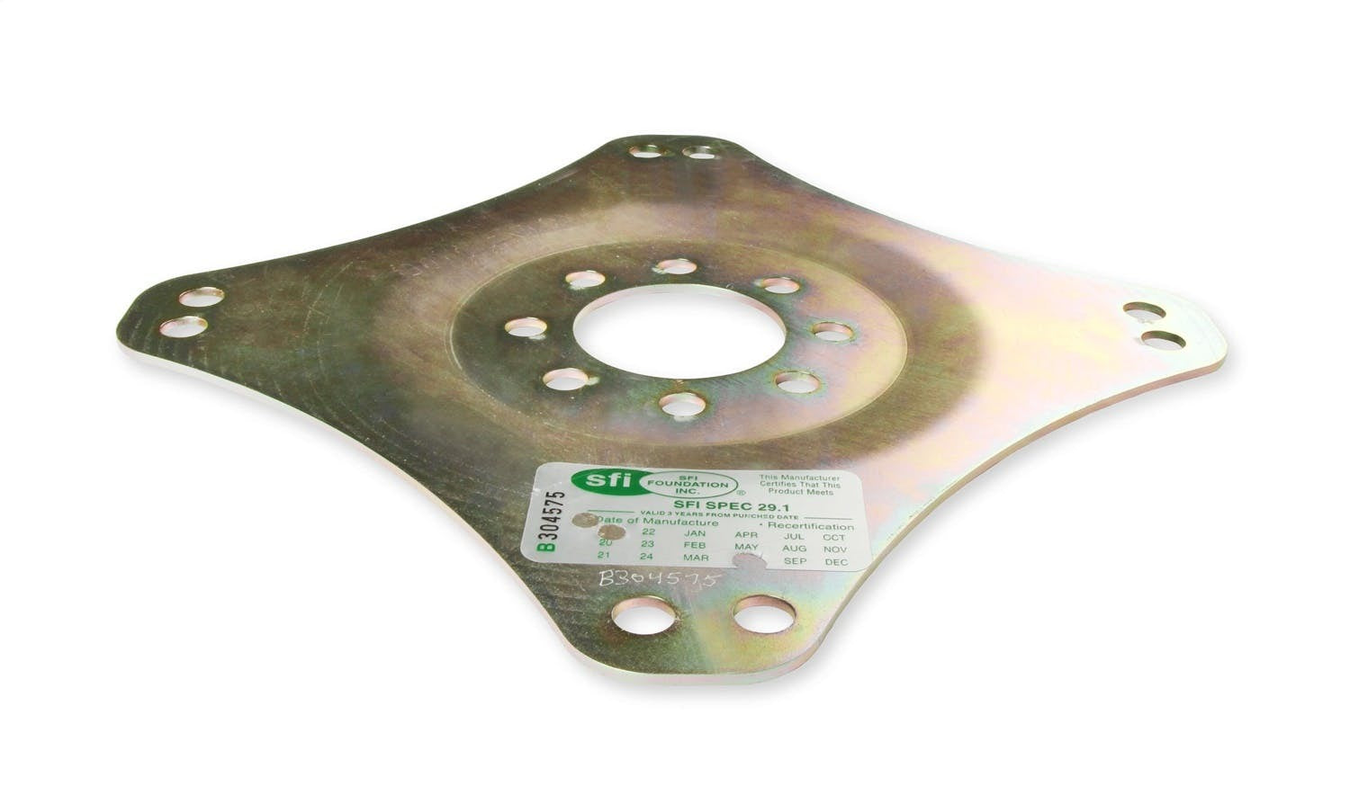 This Hays SFI Certified flexplate gives you the perfect way to connect a Gen III Hemi to a 727, 904, A500, or A518 transmission without the use of a crankshaft spacer to get proper engine to transmission alignment. This allows you to use a stock-type torque converter with attached ring gear. Our flexplate is construction of 0.105 thick Grade 80 steel for maximum strength and designed to handle the stress of high stall torque converters and high horsepower engines. Features a zinc-dichromate plated finish to resist corrosion and SFI certified under specification 29.1