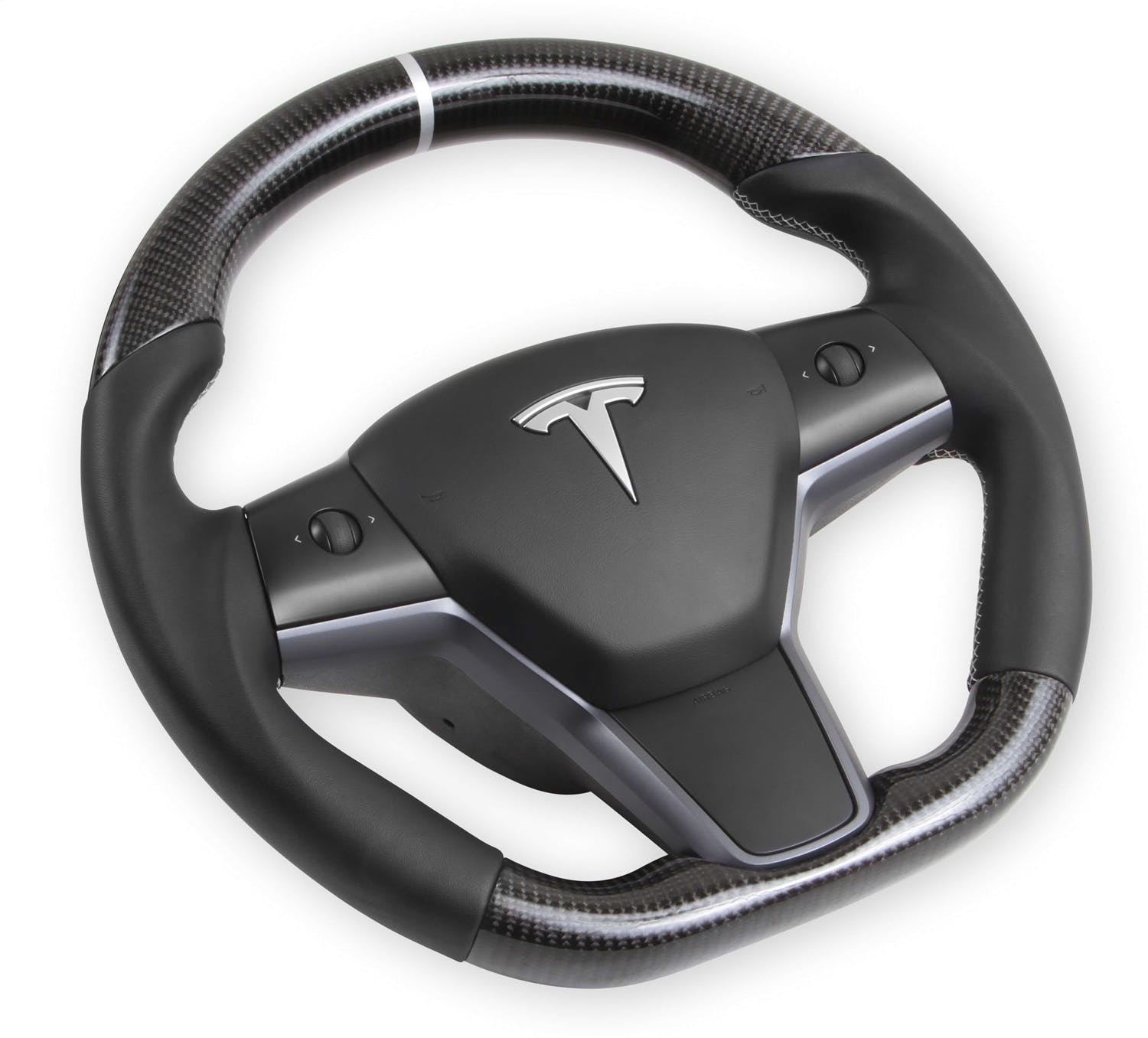 Rekudo Steering Wheel; Carbon Fiber; Black Leather Grip;
