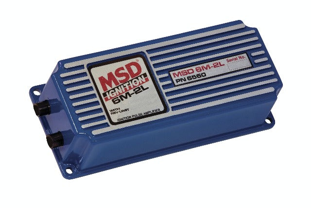 The MSD 6M-2L ignition is the same as the 6M-2 with the addition of a soft-touch rev limiter. The MSD 6M2 ignition control is designed for performance marine applications where a high energy and reliable ignition is a necessity. The capacitive discharge (CD) design of the MSD produces full power sparks throughout your boat's entire RPM range. Below 3,000 RPM, a series of multiple sparks burn in the cylinder for 20 degrees of crankshaft rotation ensuring complete combustion. Together, these sparks produce easier starting, great throttle response, more power and reduced plug fouling during idling. Weathertight connectors with multi-ribbed seals are used to make the electrical connections to the 6 m 2. These connectors securely lock together to provide reliable connections that are unaffected by water, oil, gasoline and most other chemicals associated with boats. To protect the 6M-2's electrical circuitry from marine conditions, the entire unit is potted with a Ciba polyurethane compound.