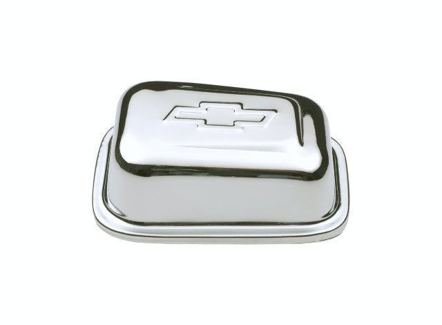 Engine Valve Cover Breather; Rectangular; 4.1 in. L X 3.0 in. W; 1.35 In. Tall; Raised Bowtie Logo Emblem On Top; Push-In Style; Fits 1.22 Inch Valve Cover Hole; Chrome Finish; Grommet Not Included; Officially Licensed GM Product; Sold each
