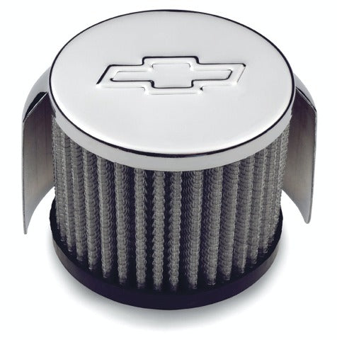 Engine Valve Cover Breather Cap; Clamp-On Style For 1-3/8 In. Tube; Chrome Plated Featuring Bowtie Logo; 3 Inch Diameter With Outside Shield; Made From High-Quality Steel; Officially Licensed GM Performance Parts Product; Sold Individually