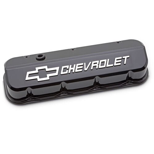 It's time to give your Big-Block Chevy a long overdue engine makeover. The new Slant-Edge look for big-block is the perfect way to customize your engine so it turns heads when you pop the hood at your local car show! With 13 different finish and Bowtie emblem combinations there's something for everyone, and the best part is that most these valve covers can be complemented with a matching Slant-Edge air cleaner, and breather caps to finish off the look in a perfectly coordinated way. There are three emblems to choose from: raised with a CNC machined finish, recessed and hand painted, blackfield recessed and raised, and lastly a new redfield recessed and raised. These premium die-cast aluminum valve covers have been optimized for maximum internal clearance, and feature innovative die-casting on the intake side so you don't have to struggle with bolts in tight places. Each pair of valve cover includes baffles, rubber grommets, and 6 special length mounting bolts for use on the intake side.