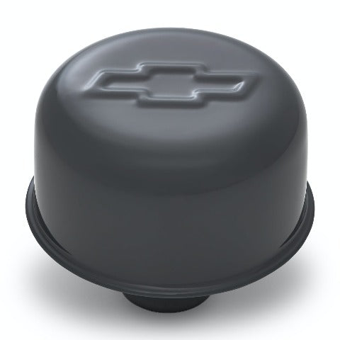 This engine valve cover breather has a 3 inch overall diameter and is 2.50 inches tall. It includes a raised Chevrolet Bowtie logo emblem on the top side. This is a push-in style valve cover breather which fits a 1.22 inch valve cover hole. Features the Shark Gray finish. This is an officially licensed Chevrolet Performance product. Sold individually.