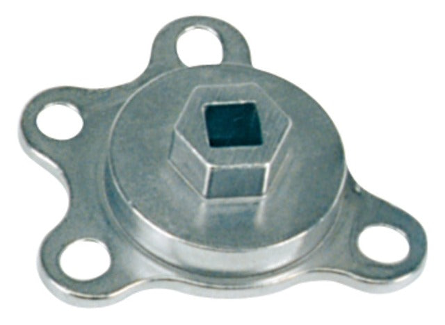Engine Rotation Adapter Tool; For Chevy V8 and Ford V8 Engines; Made from Stainless Steel Material; Bolts to Harmonic Balancer; Uses 1/2 Inch Breaker Bar or a 1 Inch Socket to Turn Crankshaft; Great for Engine Assembly or Camshaft Degreeing