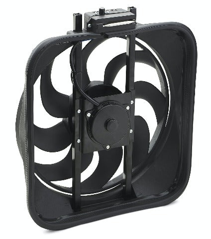 Your stock fan robs your engine of up to 15 or more horsepower! Replace it with a rugged, quieter than straight-blade, universal-fit S-blade fan equipped with an adjustable 160-240F. thermostat. Bolts to your radiator supports using sturdy brackets. With a heavy-duty motor, and 15in diameter, this unit pulls up to 2,800 cfm of air. Overall: 18 x 16-1/8 x 4.25. Amp draw, 14 amps. Mounting hardware and wiring included.