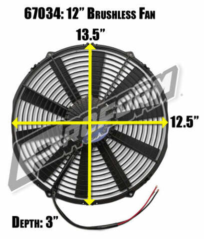 NOW AVAILABLE! THE BRUSHLESS FAN REVOLUTION IS HERE! PROFORM's new brushless motor electric cooling fans deliver more CFM than than the competition for MAXIMUM COOLING. These Brushless fans are lightweight, low-profile, no amp spikes, and create cooling unlike anything out there. The best part is, it's totally universal and designed for 12 volt systems. Not fancy engine specific controller required, just wire up the (+) and (-), and you're ready to good. Soft start ramp up prevents amp spikes. This is strictly a puller fan and is not reversible.
