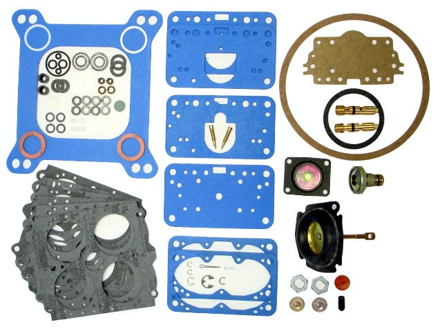 If you don't have hours to spend accumulating all these small parts, then PROFORM's performance rebuild kit is the perfect solution. The kit includes two size 110 machined needle and seat assemblies, needle and seat adjustment screws and nuts, an accelerator pump diaphragm, size 6.5 power valve, vacuum diaphragm, two idle adjustment screws, six non-stick precision die-cut gaskets for meter blocks, six non-stick precision die-cut gaskets for the main body/throttle body connection, one non-stick precision die-cut gasket for the throttle body/manifold seal, assorted rubber, metal, nylon and paper seals, and other miscellaneous items necessary for a successful rebuild. Can be used with any racing gasoline.