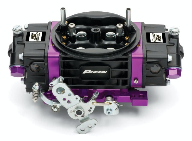 Based on the wildly popular original Race Series carburetors, PROFORM's Black Race Series Carburetors include a Black Diamond coating for enhanced fuel cooling. Each carburetor is hand assembled and tested in the U.S. utilizing the PROFORM High-Flow Carburetor Main Body, durable billet metering blocks, high performance billet throttle baseplate, and lightweight aluminum fuel bowls. PROFORM Black Race Series Carbs include: (1) Adjustable High-Flow Aluminum Main Body with Screw-In Air Bleeds, Maximum Air Flow: No Air Horn, Choke Tower, or Choke Control, Uses standard service and tuning components. (2) Billet Throttle Base Plates: Adjustable Secondary Air Flow Cam Bracket, Solid Billet Construction, Manufactured in the U.S.A., Timed and Full Vacuum Tubes for Accessories and Tuning, Button Torx Head Throttle Plate Screws, Power Valve Blow Out Protection, Progressive Slip Link Mechanical Secondary Linkage, Serviceable Throttle Levers, and Ford Kickdown. (3) Billet Metering Blocks: Solid Billet Construction, Durable, No Warping or Porosity Problems, Changeable Idle Feed Restriction, Manufactured in the U.S.A. (4) Aluminum Fuel Bowls: Lightweight Aluminum, Sight Glass Windows for easy float adjustment.