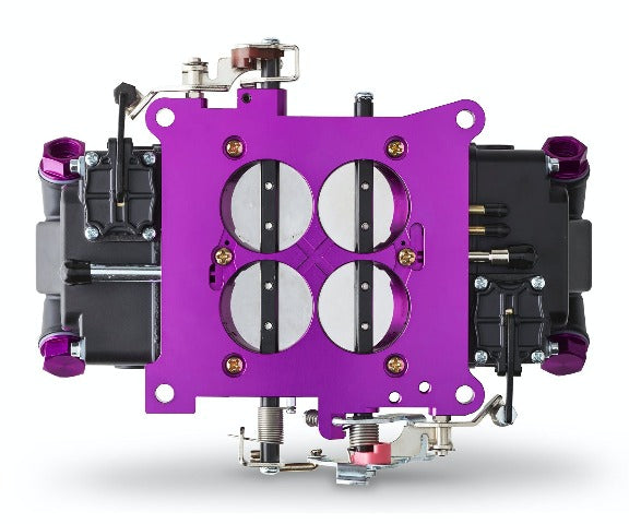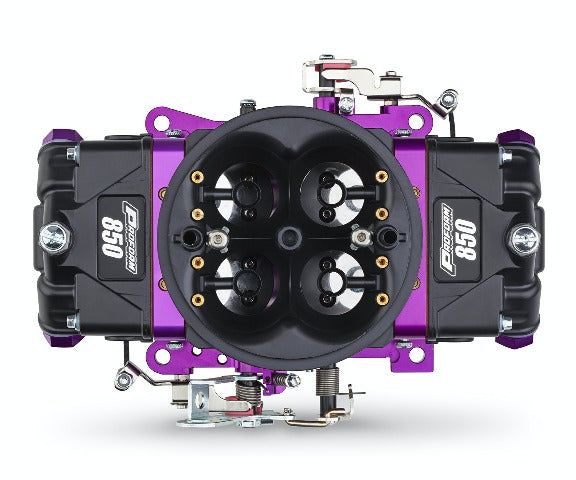 Engine Carburetor; Black Race Series Model; 850 CFM Dual Inlet 4-Barrel With Mechanical Secondaries; Square Type Bore Mount; Features Down-Leg Boosters and Black Diamond Finish; No Choke; Assembled With 100% New Components; Sold Each