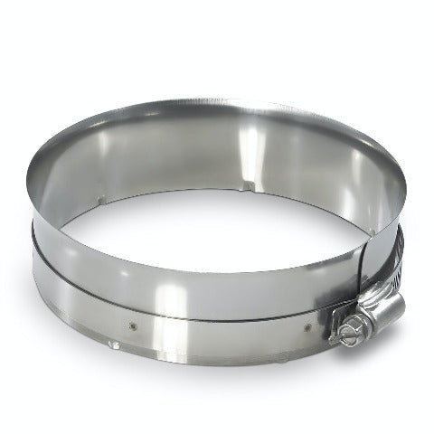 Engine Piston Ring Installation Tool; Universal Model; Fits 2.50 Inch To 5.00 Inch Bore Sizes; Made From High-Quality Stainless Steel and Features A Natural Finish; Complete With Band Clamp For Accurate Adjustment; Patented and Sold each