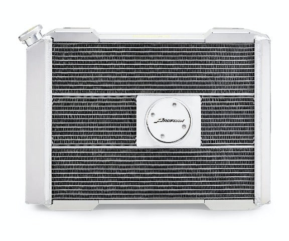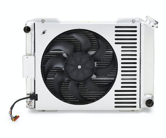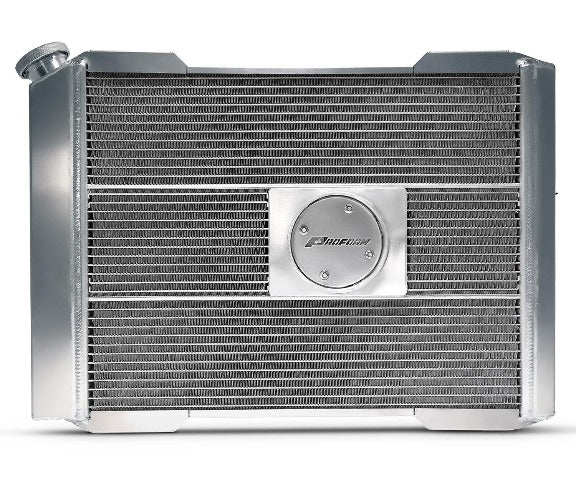 The basic concept of automotive radiators hasn't changed in more than 100 years! And fans have been hung onto them in a mish-mash of ways for just as long. Since then, aside from materials and design improvements, NOTHING HAS CHANGED...UNTIL NOW! PROFORM is upending the radiator industry with the introduction of its new Slim-Fit Integrated Radiator System! No more cobbling together a core, a fan, and possibly a shroud, and gobbling up 8 of valuable front-to-back under-hood space, sometimes leading to clearance problems. BETTER DESIGN - UP TO 40% THINNER! AND SLEEK! PROFORM has completely rethought how the radiator, fan, thermostat, and shroud can come together seamlessly to create a unified radiator system that is under 4 thick (core/shroud), looks and works great, and is pre-assembled right out-of-the-box! This universal model is ready for customization, or might just happen to be the right size for easy installation into your vehicle. A hodge-podge of one hundred years of rigged-up cooling paraphernalia has come to an end. INNOVATION! What did we do? With revolutionary engineering we flipped the motor around so instead of hanging on the outside, it's integrated directly into a uniquely designed core made with state-of-the-art brazing technology (with no meaningful cooling compromise). Combined with a high-performance fan blade inserted into a smooth aluminum shroud, the result is the industry's narrowest, most streamlined look. Every PROFORM Slim-Fit Integrated Radiator includes a shroud, electric fan with adjustable thermostat, wiring harness, and radiator cap.