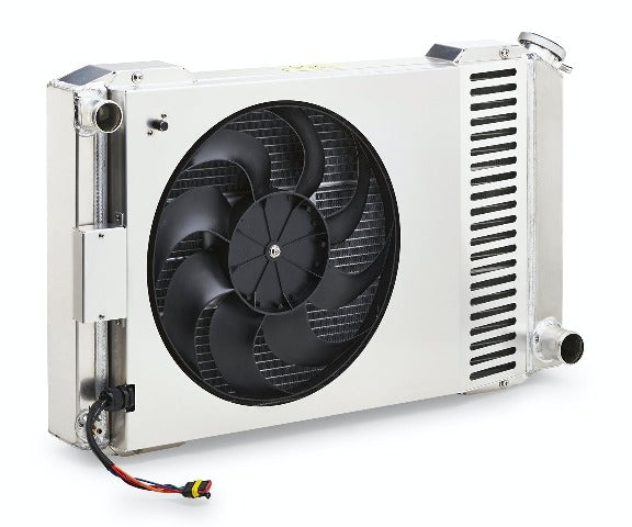 The basic concept of automotive radiators hasn't changed in more than 100 years! And fans have been hung onto them in a mish-mash of ways for just as long. Since then, aside from materials and design improvements, NOTHING HAS CHANGED...UNTIL NOW! PROFORM is upending the radiator industry with the introduction of its new Slim-Fit Integrated Radiator System! No more cobbling together a core, a fan, and possibly a shroud, and gobbling up 8 of valuable front-to-back under-hood space, sometimes leading to clearance problems. BETTER DESIGN - UP TO 40% THINNER! AND SLEEK! PROFORM has completely rethought how the radiator, fan, thermostat, and shroud can come together seamlessly to create a unified radiator system that is under 4 thick (core/shroud), looks and works great, and is pre-assembled right out-of-the-box! This universal model is ready for customization, or might just happen to be the right size for easy installation into your vehicle. A hodge-podge of one hundred years of rigged-up cooling paraphernalia has come to an end. INNOVATION! What did we do? With revolutionary engineering we flipped the motor around so instead of hanging on the outside, it's integrated directly into a uniquely designed core made with state-of-the-art brazing technology (with no meaningful cooling compromise). Combined with a high-performance fan blade inserted into a smooth aluminum shroud, the result is the industry's narrowest, most streamlined look. Every PROFORM Slim-Fit Integrated Radiator includes a shroud, electric fan with adjustable thermostat, wiring harness, and radiator cap.