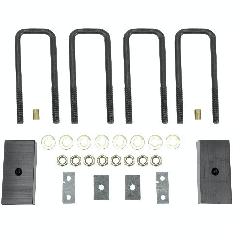 - EASY TO INSTALL -- Kit includes two rear blocks, four coated U-bolts and eight nuts that install easily