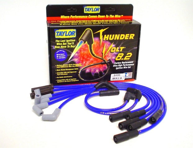 Taylor's ThunderVolt 8.2mm outperforms the competition in both looks and performance… all at an affordable price. This ignition wire is a must if you are using a multiple spark discharge ignition system. Features an exclusive two layer 100% Zimplex silicone outer jacket that provides heat resistant protection up to 600º F. Features 100% silicone spark plug boots and vibration proof double spring locking plug terminals.