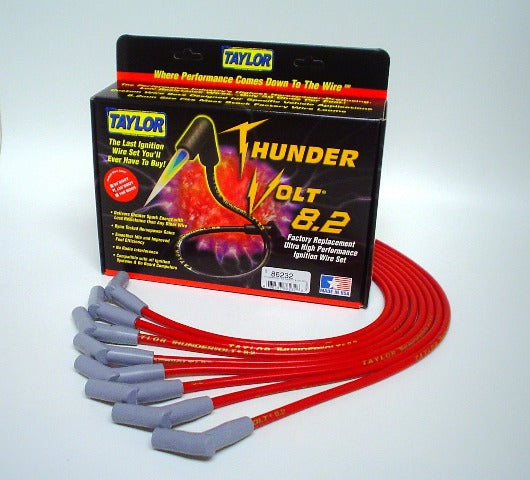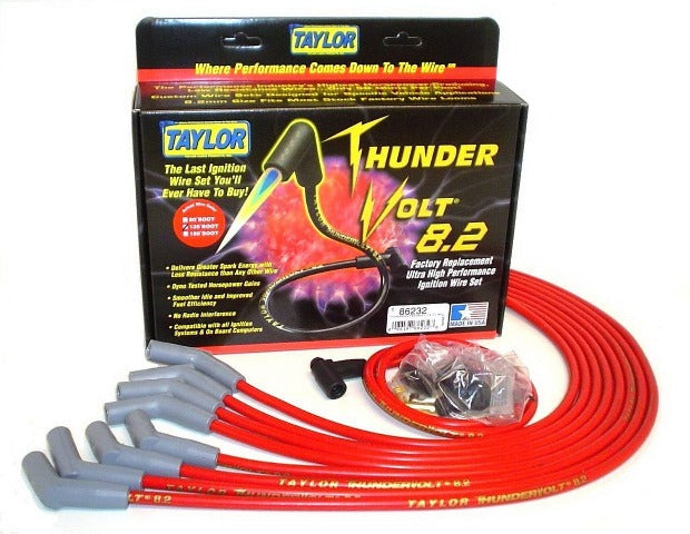 Taylor's ThunderVolt 8.2mm outperforms the competition in both looks and performance… all at an affordable price. This ignition wire is a must if you are using a multiple spark discharge ignition system. Features an exclusive two layer 100% Zimplex silicone outer jacket that provides heat resistant protection up to 600º F. Features 100% silicone spark plug boots and vibration proof double spring locking plug terminals.