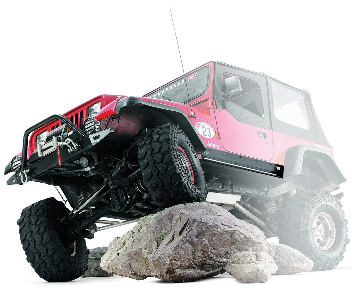 How many body shots can your Jeep absorb? a heckuva lot more with Warn rock sliders. The Thick Steel Plate construction and black powder coat finish ensure durability. The plate bolts right to the Jeep body, reinforcing its weakest spot. Mounting hardware