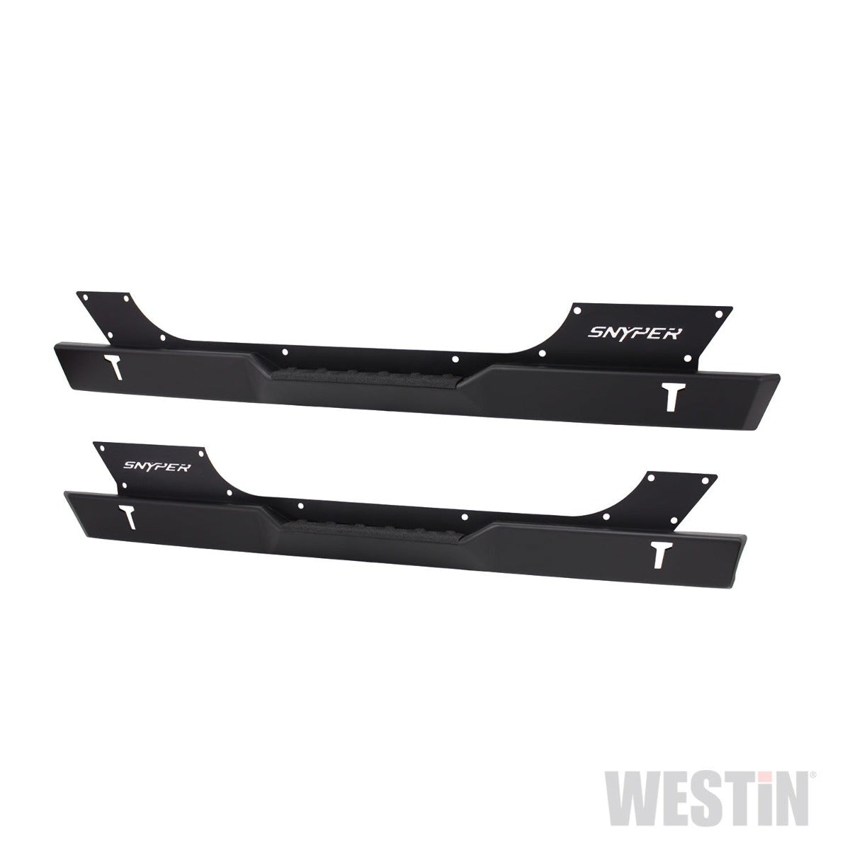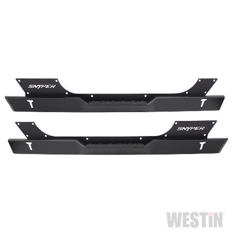 Westin Snyper Rock Sliders are made to protect the Jeeps rocker panel while providing a fully functional step. They mount tight to the rocker panel which provides maximum off-road ground clearance. Step areas feature heavy textured epoxy non-skid step area for maximum traction. They also feature two off-road jack points. Available for 2 door and 4 door Jeep(R) Wrangler JK.