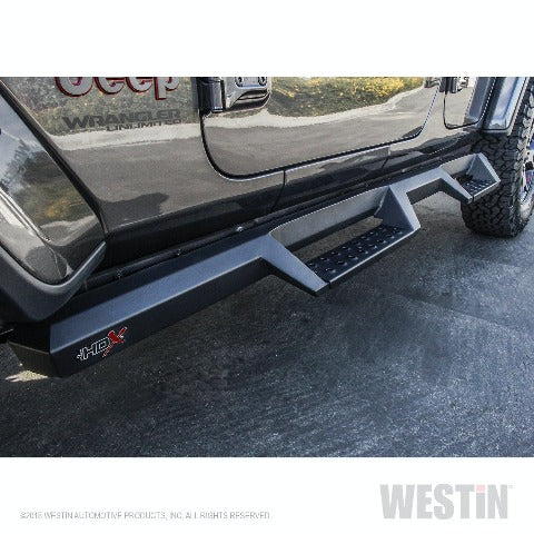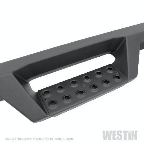 Westins HDX Drop Nerf Step Bars provide the rugged look and function that truck owners need and want. They feature a solid 1-piece steel construction and heavy duty punch plates creating high traction step areas. The HDX Drop Nerf Step Bars also feature Westins notched bar design which provides more than 2" of additional toe/heel placement versus competitive brands. Available in a textured black finish that complements Westin HDX Bumpers. The HDX Drop Steps have vehicle specific applications and include a vehicle specific mount kit, installation hardware and instructions.