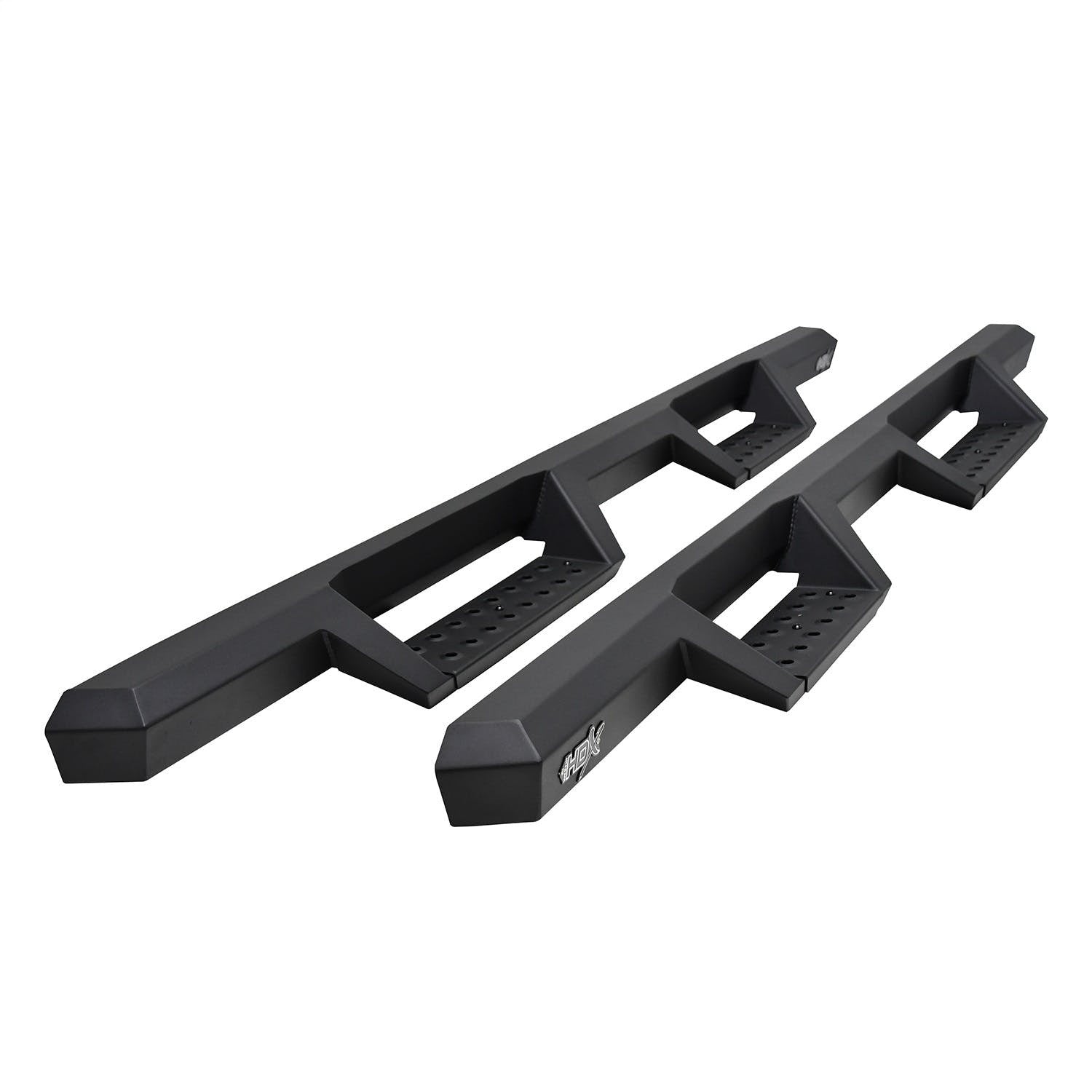 Westins HDX Drop Nerf Step Bars provide the rugged look and function that truck owners need and want. They feature a solid 1-piece steel construction and heavy duty punch plates creating high traction step areas. The HDX Drop Nerf Step Bars also feature Westins notched bar design which provides more than 2" of additional toe/heel placement versus competitive brands. Available in a textured black finish that complements Westin HDX Bumpers. The HDX Drop Steps have vehicle specific applications and include a vehicle specific mount kit, installation hardware and instructions.