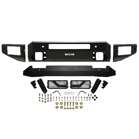 Westins Pro-Mod Front Bumper combines enhanced vehicle protection, with great looks. Pro-Mods revolutionary lightweight modular design is uniquely engineered with outrigger reinforcement brackets to provide maximum front end protection without compromising on strength, integrity or durability. The "high and tight" bumper profile creates a greater approach angle, which significantly improves off-road driving capabilities. The lightweight design also requires smaller shipping packages which dramatically reduces shipping costs. Pro-Mod bumpers feature a textured black finish with an e-coated base coat, providing long lasting corrosion protection from the elements. Once you see the Pro-Mod Front Bumper, the choice becomes obvious.