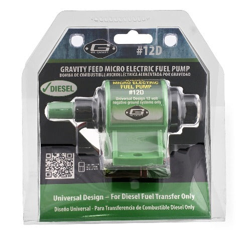12-volt electric diesel fuel transfer pump is safe for diesel fuel use. Simple 2 wire design, self priming, includes 100 micron in line filter. 4-7psi 35GPH, small universal design allows easy set and installation anywhere. Solid state worry free electronics, 12 volt negative ground systems only.