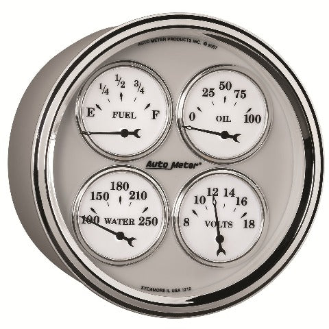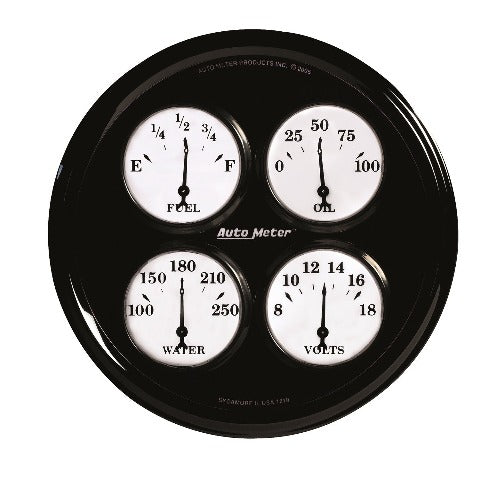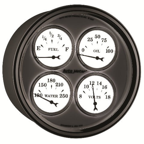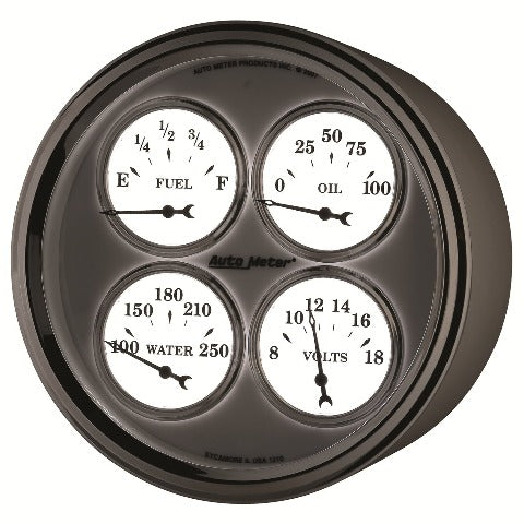 Sometimes space is limited. The AutoMeter Quad Gauge provides a solution to limited dashboard space while providing a clean look. Individual AutoMeter air core meter movements for each function provide the accuracy and durability required by even the most demanding applications. Includes a single wire 1/8 NPT temperature sender and a 1/8 NPT oil pressure sender. The voltmeter reads from 8-18v on negative ground electrical systems and fuel level resistance range is 240 ohms empty to 33 ohms full (compatible with AutoMeter's 3262 fuel level sender).