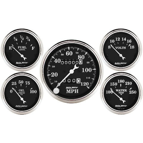 AutoMeter has brought together the most popular gauges into a simple kit. The kit includes a speedometer, water temperature, oil pressure, fuel level, and voltmeter. All senders included where applicable.