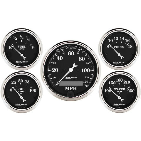 AutoMeter has brought together the most popular gauges into a simple kit. The kit includes a speedometer, water temperature, oil pressure, fuel level, and voltmeter. All senders included where applicable.