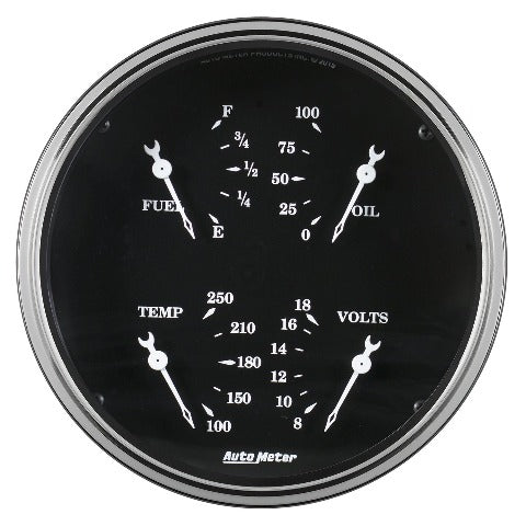 Sometimes space is limited. The AutoMeter Quad Gauge provides a solution to limited dashboard space while providing a clean look. Individual AutoMeter air core meter movements for each function provide the accuracy and durability required by even the most demanding applications. Includes a single wire 1/8 NPT temperature sender and a 1/8 NPT oil pressure sender. The voltmeter reads from 8-18v on negative ground electrical systems and fuel level resistance range is 0 ohms empty to 90 ohms full (compatible with Amid 60's through mid 90's GM fuel level senders).