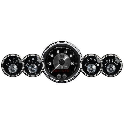 5 PC. GAUGE KIT; 3-3/8in./2-1/16in.; GPS SPEEDO W/LCD ODO; PRESTIGE BLACK DIAMOND