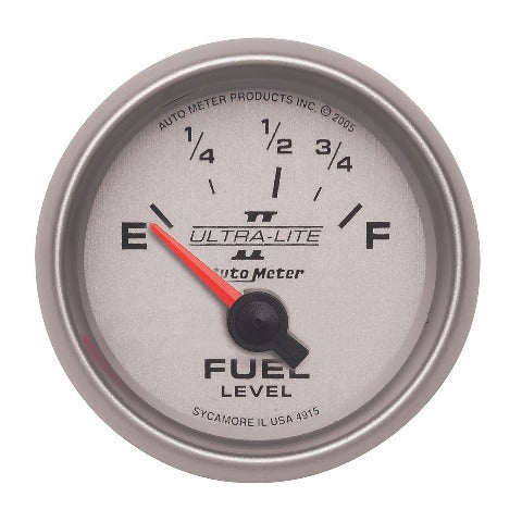 One of the most necessary gauges in a dashboard, AutoMeter makes it easy by offering 5 different resistance range configuration to match your existing fuel sending unit. Available in 0-90 ohm (GM mid 60's to mid 90's), 0-30 ohm (early GM), 73-10 ohm (pre 90's Ford and Chrysler), 16-158 ohm (later model Fords) and 240-33 ohm (aftermarket senders such as the AutoMeter 3262). Our patented air core meter movement receives extra dampening to help combat the effects fuel slosh in non-baffled tanks.