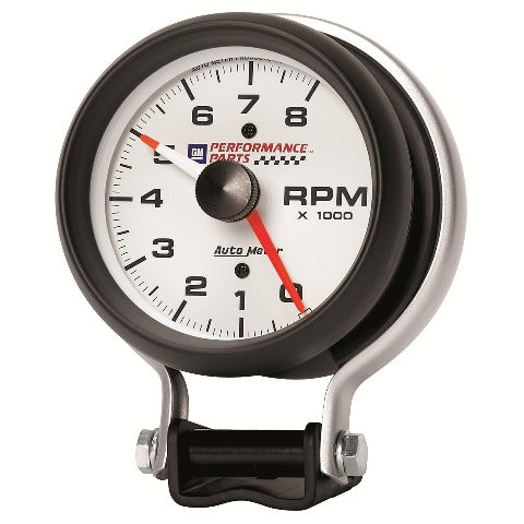 3-3/4in. PEDESTAL TACHOMETER; 0-8;000 RPM; CHEVY RED BOWTIE; WHITE