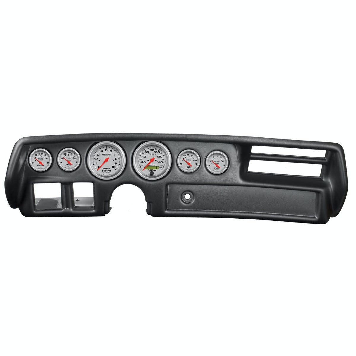 Upgrade your muscle car or classic truck with an AutoMeter direct-fit Ultra-Lite dash kit. Each easy-to-install package includes a durable replacement dash panel and six iconic Ultra-Lite series gauges featuring silver, brushed aluminum dials, bold performance artwork, high contrast fluorescent red needles, and satin silver aluminum bezels. Warm white perimeter lighting is easy on your night vision while our easy, no fab installation allows you to preserve the original interior of your classic ride.