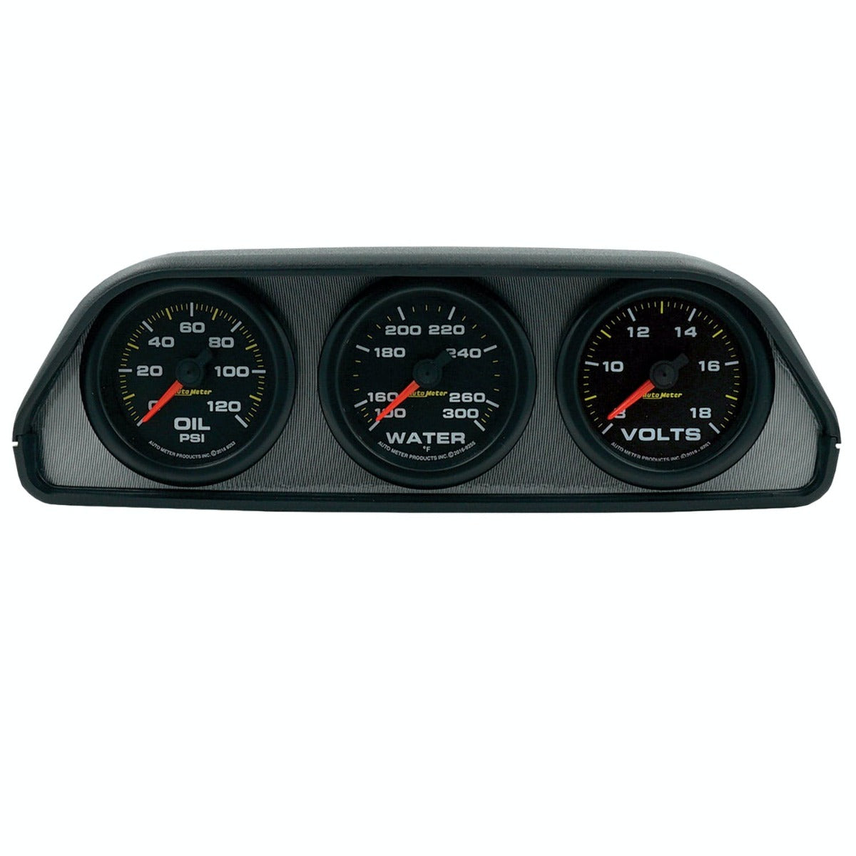 GAUGE KIT; DASH POD MOUNT; OILP/WTMP/VOLT; 2-1/16in.; 100PSI/300° F/18V; BLK DIAL; BLK BZL; EEG