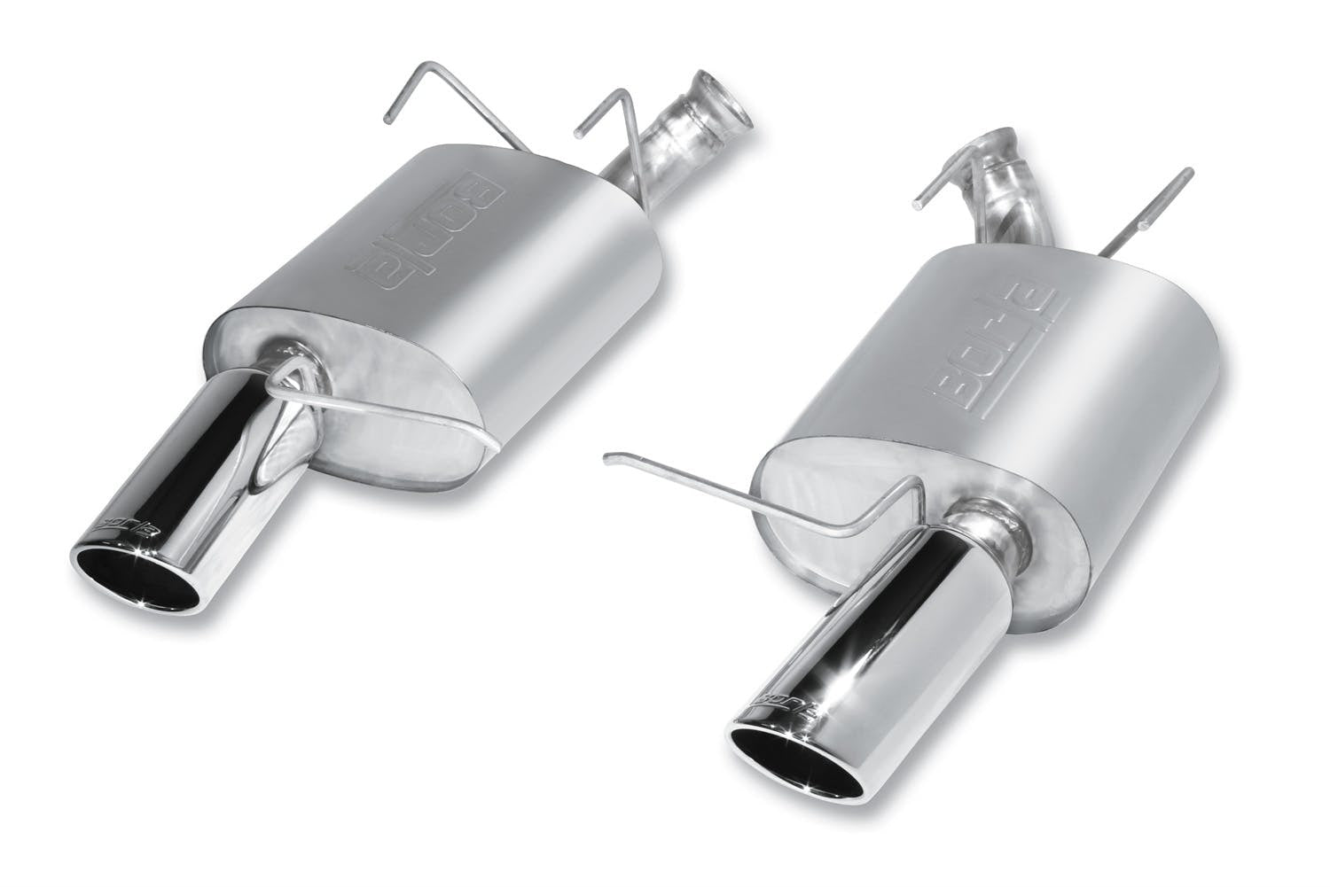 Features bright chrome on T-304 stainless steel tips. ATAK, Acoustically-Tuned Applied Kinetics, technology is based on specifically-tuned attributes of the internal muffler cores, which are calibrated on a vehicle-by-vehicle basis to deliver the most desirable sound. This is our most aggressive sound. Even though the sound on the exterior is uncompromising, the sound in the cabin is devoid of harsh resonance, a product of painstaking engineering and over 40 years of experience. Each system is built from premium T-304 stainless steel, superior to T-400 series knockoffs (such as 409), to give you the absolute best in performance and durability. Ultra-smooth mandrel bends ensure maximum flow & power, and precision computer-controlled CNC manufacturing ensures an accurate fit. Best of all, Borla stands behind every system with a Million-Mile Warranty. Just what you?d expect from the world?s most experienced (and most winning) exhaust brand.