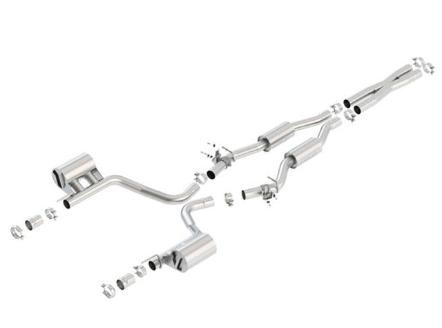 System features a X-Pipe for increased performance and improved sound. This system includes functioning MDS (multi-displacement system) valves. Tips NOT included. Use factory valance / tips. BORLA(r) Cat-Back(tm) & Axle-Back exhaust systems feature patented straight-through and multi-core technology to unleash hidden horsepower. Increased exhaust velocity adds power, driving excitement, fuel economy, and the distinctive BORLA(r) Sound of Power respected by motoring enthusiasts everywhere. Each system is built from premium T-304 austenitic stainless steel, superior to T-400 series knockoffs (such as 409), to give you the absolute best in performance and durability. Ultra-smooth mandrel bends ensure maximum flow & power, and precision computer-controlled CNC manufacturing ensures an accurate fit. Best of all, BORLA(r) stands behind every system with a Million-Mile Warranty. Just what you'd expect from the world's most experienced (and most winning) exhaust brand.