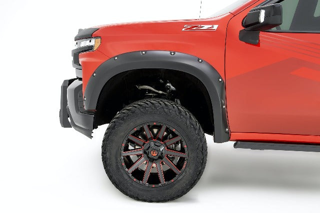 Pocket Style Fender Flares; 4 pc.; Front Tire Coverage 1.5 in.; Front Height 6.13 in.; Rear Tire Coverage 1.5 in; Rear Height 7 in.; Smooth Finish; Black;