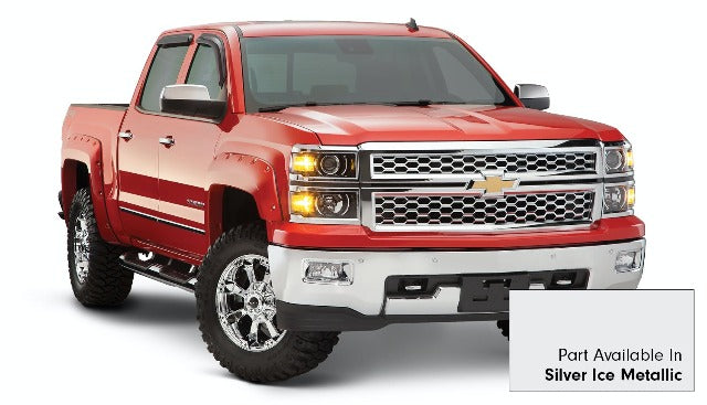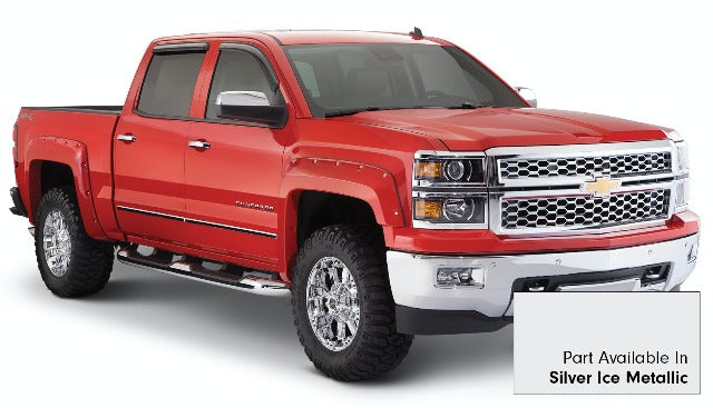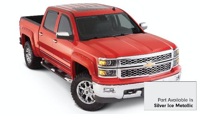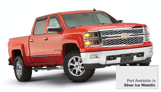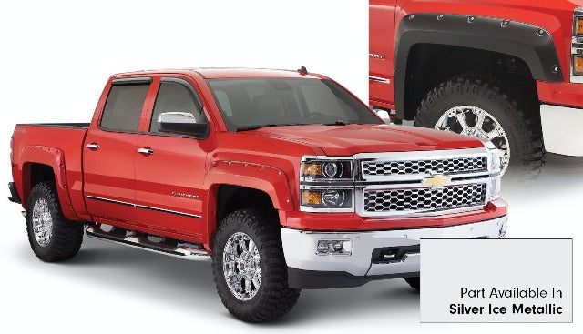 Bushwacker's rugged, iconic Pocket Style Fender Flares allow for more tire coverage and more clearance for trucks and SUVs while protecting the vehicle from dirt and debris. These flares are now available pre-finished to match the paint on your new Chevrolet Silverado, plus they have the edge trim and stainless steel hardware pre-installed for quick and easy installation and a perfect fit . Made from sturdy Dura-Flex 2000 material, these flares are warp-resistant and tailor made for each application. Despite their bolted-on appearance, these flares install easily with minimal drilling for a secure fit. And since they're ready to install out of the box, there's no waiting on paint, and no hassle with installation.
