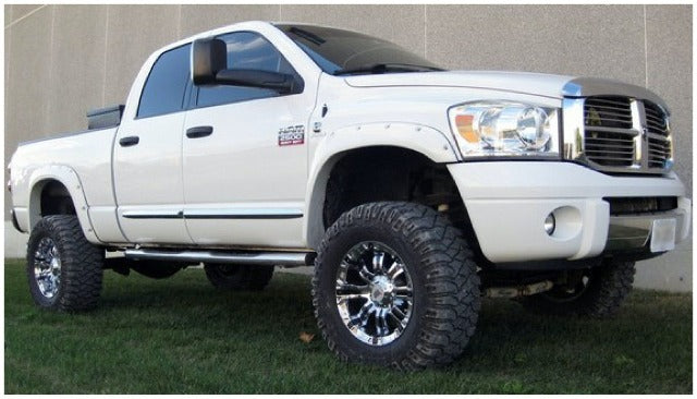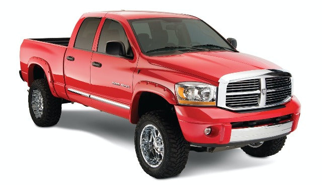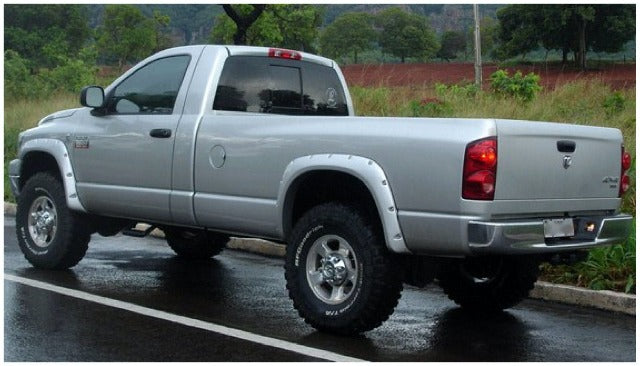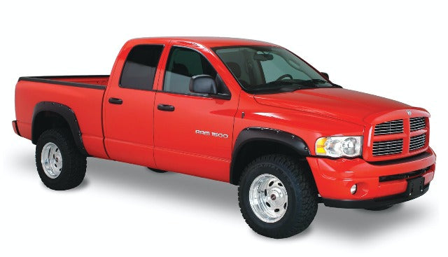 With their recessed stainless steel bolts and massive presence, Pocket Style Fender Flares are a Bushwacker original and an off-road icon. They give you the hard-core look of bolt-on flares, with no body-side sheet metal drilling required. Pocket Style Fender Flares are custom-designed for your vehicle to complement oversized tires and high-clearance lift kits. You can mount them right out of the box with their tough, OEM-style matte black finish they're UV protected so they won't chalk. You can also paint them to match or accent the body color for a factory-custom look. Pocket Style Fender Flares are made from our thick, warp-resistant Dura-Flex 2000 material and tailor-made for added durability and flexibility on the trail. When you need maximum tire coverage with minimum time and effort, it's in the pocket. Pocket Style Fender Flares from Bushwacker.