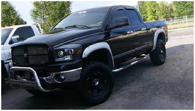 DISCONTINUED - Pocket Style Fender Flares; 4 pc.; Front Tire Coverage 2.5 in.; Front Height 4.75 in.; Rear Tire Coverage 2.5 in; Rear Height 5 in.; Smooth Finish; Black;