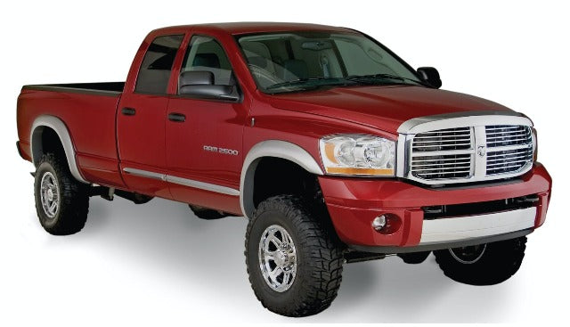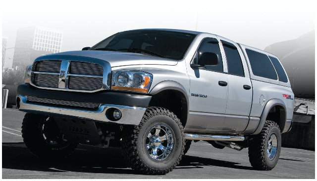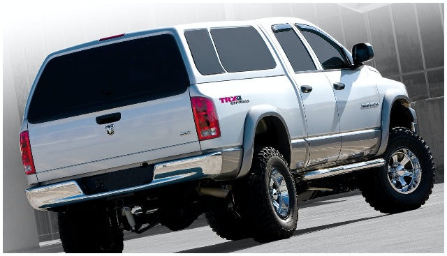 You've equipped your vehicle with oversize wheels and tires for serious off-road traction and clearance. Now you need extra tire coverage to protect your rig's body and maybe even comply with local laws. Bushwacker Extend-A-Fender Flares deliver premium-grade protection and style matched to oversized tires, yet as tough as they are, they go on easily with no drilling required. You can install them in minutes and enjoy them for years. Our exclusive Dura-Flex 2000 material is designed for added durability and flexibility with built-in UV protection. Your Extend-A-Fender Flares resist chalking, cracking, and warping, whether you leave them with their OEM-style matte black finish or paint them for a totally personalized look. Either way, your truck will look factory-equipped for your off-road tires. Extend-A-Fender Flares go on easy, perform tough, and look great.