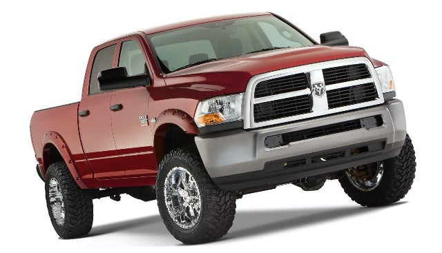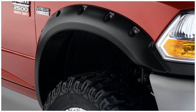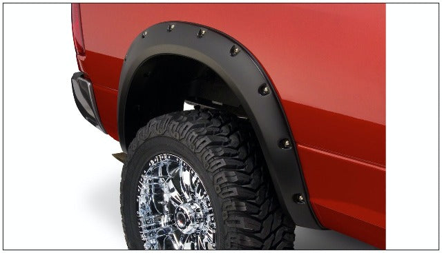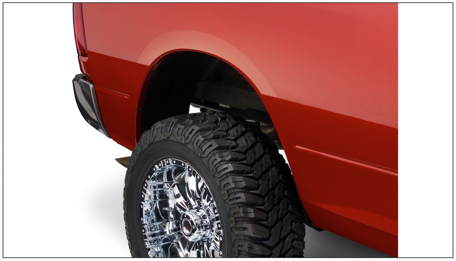 With their recessed stainless steel bolts and massive presence, Pocket Style Fender Flares are a Bushwacker original and an off-road icon. They give you the hard-core look of bolt-on flares, with no body-side sheet metal drilling required. Pocket Style Fender Flares are custom-designed for your vehicle to complement oversized tires and high-clearance lift kits. You can mount them right out of the box with their tough, OEM-style matte black finish they're UV protected so they won't chalk. You can also paint them to match or accent the body color for a factory-custom look. Pocket Style Fender Flares are made from our thick, warp-resistant Dura-Flex 2000 material and tailor-made for added durability and flexibility on the trail. When you need maximum tire coverage with minimum time and effort, it's in the pocket. Pocket Style Fender Flares from Bushwacker.